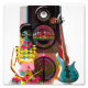 Motivo colorido con guitarra y altavoces. ¡Para los amantes de la música!
