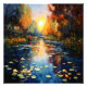 Este diseño será ideal para los amantes del impresionismo. Muestra una puesta de sol sobre un estanque.