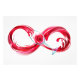 Símbolo infinito de flujo continuo de vino tinto vertiendo en vidrio de vidrio sobre fondo blanco.