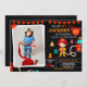 Foto Invitación a la fiesta de cumpleaños del bombero. Invitación curada para la fiesta de cumpleaños del joven bombero que incluye camión de bomberos rojos, un chico bombero y algunos equipos de lucha contra incendios. Soneva la alarma y edite simplemente esta plantilla fácil de usar en el menú Personalización.
