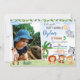 Foto Invitación de cumpleaños Safari Animales de la jungla fiesta de primer cumpleaños. ¡Vamos a ser salvajes! Este adorable tema de safari invitado para cualquier fiesta de cumpleaños de edad con animales fiestas: elefante, mono, jirafa, león, tigre y cebra sobre hierba verde bajo nubes azules. Simplemente edite esta plantilla fácil de usar en el menú Personalización para hacerlo especial.