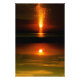 This is a photo of a sunset taken on Vancouver Island in British Columbia, Canada. The illusion is set with two glowing suns as mirrors across a calm, orange-hued sky. The reflection creates a surreal atmosphere, blending the colors of dusk and twilight.