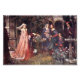 Pintura inspirada en el renacimiento de personas en el jardín con fuente. Centro de la pieza en una doncella en un manto. Bonito arte vintage de John William Waterhouse. Dominio público.