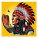 Retrato nativo americano de jefe que mira lejos en un desértico paisaje salvaje sobre fondo de atardecer, Ilustracion vector original Copyright BluedarkArt ElChameleonArt
