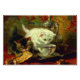 Imagen con la pintura al óleo de Henriëtte Ronner-Knip High Tea (1821-1909). Un gatito blanco esponjoso bebe de una taza de té y un mantel cuelga una repostería en una bandeja de té. Un regalo perfecto para los amantes del gato y del romanticismo.