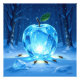 Ein funkelnder Apfel aus reinem Kristall liegt eingebettet im weichen Schnee. Um ihn herum tanzen leuchtende Glühwürmchen, die mit ihrem warmen Licht das frostige Blau durchbrechen. Ein magisches Zusammenspiel aus Kälte und Licht, Natur und Fantasie – wie ein Schatz aus einer anderen Welt.