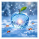 Ein funkelnder Apfel aus reinem Kristall liegt eingebettet im weichen Schnee. Um ihn herum tanzen leuchtende Glühwürmchen, die mit ihrem warmen Licht das frostige Blau durchbrechen. Ein magisches Zusammenspiel aus Kälte und Licht, Natur und Fantasie – wie ein Schatz aus einer anderen Welt.