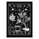 ¡Grunge el diseño de la tarjeta tarot para los amantes del té! El Té. Ilustracion blanco y negro con tetera vertiendo agua en un té, arbusto de té y esqueleto.