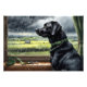 El Labrador Negro quiere salir, pero la lluvia deja de jugar.