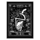 ¡Grunge el diseño de la tarjeta tarot para los amantes del té boba! La Boba. Ilustración blanca y negra con un té boba con esqueleto bailarín, estrellas y iluminación.