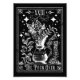 ¡Grunge el diseño de la tarjeta tarot para los amantes del café! El Vagón Se Acabó. Ilustraciones blancos y negros con un chorro de café, granos de café y manos esqueléticas.