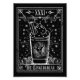 Diseño de la tarjeta tarot grunge para los amantes del pan de jengibre. El Gingerbread. Ilustracion blanco y negro con una taza de café con crema batida y manos esqueléticas, pan de jengibre, palitos de canela, anís estrellado y copos de nieve.
