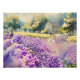 A watercolor painting capturing the tranquility of a vast lavender field under a soft sky. Figures in the distance stroll past a quaint farmhouse, surrounded by lush trees and golden fields, evoking a peaceful rural escape. Ideal for nature lovers and art enthusiasts seeking calming landscapes