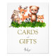 Mejora la decoración de tu baby shower con este encantador letrero de Tarjetas y Regalos para Bebé de Animales del Bosque. Con deliciosas criaturas del bosque, este letrero encantador es la adición perfecta para tu celebración. Guía a tus invitados sobre dónde dejar sus buenos deseos y regalos con este adorable toque de naturaleza para tu baby shower.