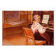 Pintura vintage de una niñita tocando un piano vertical con su partitura de Mozart frente a ella. Obra de arte del artista sueco Carl Larsson.