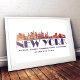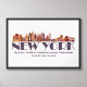 Esquina ilustrada de la ciudad de Nueva York con Manhattan, Brooklyn y otros distritos con coordenadas mostradas abajo.