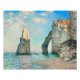 "The Cliffs at Étretat" de Claude Monet es una obra de arte cautivadora que capta la belleza y la grandeza de los icónicos acantilados de la ciudad costera de Étretat, situada en Normandía, Francia. Pintado a finales del siglo XIX, este aceite sobre lienzo artístico muestra el excepcional talento de Monet para capturar el juego de la luz, el color y la atmósfera. El cuadro retrata los imponentes acantilados blancos que se elevan majestuosamente desde las aguas azules del Canal de la Mancha. Monet retrata hábilmente la tenacidad y magnitud de los acantilados empleando llamaradas audaces y una paleta de colores armoniosa. Los bordes afilados de los acantilados contrastan con la extensión serena del mar, creando una yuxtaposición dramática que aumenta el impacto emocional de las obras de arte. El dominio de Monet de capturar la luz es particularmente evidente en esta pieza. Retrata la siempre cambiante luz del paisaje costero, desde el cálido resplandor de la luz del sol que ilumina los acantilados hasta los tonos fríos de las sombras que caen sobre el agua. A través de su suelto y espontáneo trabajo de pinceles, Monet capta la fugaz naturaleza de la luz, evocando un sentido de movimiento y vitalidad. Los acantilados de Étretat son un excelente ejemplo de la fascinación de Monet por la naturaleza y su capacidad para traducir su esencia en lienzo. La pintura invita al espectador a sumergirse en el lugar, como si estuviera parado en los acantilados bareados por el viento, sintiendo la brisa salada y escuchando las olas que se estrellan. Transmite una sensación de asombro y reverencia por el poder crudo y la belleza sublime del mundo natural. Hoy, Monet's The Cliffs at Étretat es celebrado como uno de sus trabajos más icónicos, encarnando el énfasis del movimiento impresionista en captar las fugaces sensaciones de luz y atmósfera. Sigue inspirando y cautivando a los entusiastas del arte y sirve como testimonio de la profunda visión artística y habilidad técnica de Monet.