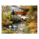 "Los Geese", representa una bandada de gansos en un entorno natural, probablemente una granja o un prado. Los gansos son mostrados pastoreando o moviéndose, sus plumas blancas contrastan con la exuberante vegetación del paisaje. Las pinceladas suaves y el estilo impresionista aportan un sentido de movimiento y de vida a la escena, enfatizando el comportamiento natural de los gansos. En el fondo hay árboles y un estanque o un arroyo, bañados por una luz suave y natural. La paleta de colores es armoniosa, con varios tonos verdes, azules y blancos que se mezclan a la perfección para crear un ambiente tranquilo. La interrelación de luz y sombra añade profundidad y dimensión al cuadro, destacando los gansos y su entorno. "El Geese" es un testamento de la habilidad de encontrar belleza en momentos simples y cotidianos. La atención al detalle y el dominio de la luz y el color crean una representación vívida y atractiva de la vida rural. Este cuadro invita a los espectadores a apreciar la tranquila elegancia de la naturaleza y el suave ritmo del campo.