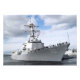 Marineros manejan los rieles a bordo del destructor de misiles guiados USS Momsen