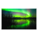 Intensas luces boreales (Aurora borealis) sobre el lago Laberge, Territorio Yukón, Canadá, con siluetas de sauces a orillas del lago.