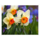 Un luminoso jardín primaveral con daffodils cremosos con centros naranjas.