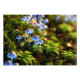 Immerse yourself in the hidden wonders of the forest floor with this stunning bioluminescent micro-landscape. This high-definition art piece captures the ethereal glow of magical blue mushrooms nestled among lush green moss and delicate ferns, illuminated by a soft, golden woodland light.