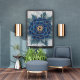 Este impresionante cuadro presenta una gran flor azul con pétalos de oro audaces. La flor está rodeada de delicadas hojas blancas, creando un contraste cautivador. Esta pieza seguramente añadirá un toque de elegancia y sofisticación a cualquier hogar.