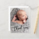 Esta nota de agradecimiento de bebé de fotos presenta caligrafía moderna gracias en negro con una gran foto de los clientes. La parte posterior incluye un mensaje genérico de agradecimiento que puede personalizar para cada invitado o eliminarlo por completo si prefiere entregar a la derecha su agradecimiento. Haga clic en editar en personalizar.