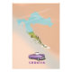 Mapa de Croacia Impresión poster ilustrada de la nación europea con un auto morado.