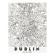 Mapa de viaje antiguo de Dublín Irlanda en un estilo desgastado en negro y blanco.