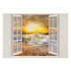 Una hermosa ola que se estrelló sobre la orilla al atardecer, como se ve a través de una ventana abierta, le da un sentido de paz y tranquilidad a su casa.