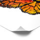 Naranja, mariposa monarca detallada con ala decorada con amapola californiana amarilla y vibrante sobre fondo blanco.