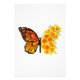 Naranja, mariposa monarca detallada con ala decorada con amapola californiana amarilla y vibrante sobre fondo blanco.