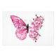 Arreglo floral de mariposa rosa con flores japonesas de cerezo rosadas sobre fondo blanco.