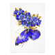 Joyería, azul, zafiro, mariposa de flor brillante con ala decorada con flores azules preciosas con hojas de oro sobre fondo blanco.