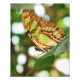 Mariposa verde y marrón colorida posando sobre una hoja cerca. Fotografía de la naturaleza por Susan. Por favor visite a los Posters de Smilin' Eyes para más fotos de flores y naturaleza.