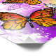 Naranja, mariposas monarcas detalladas sobre la luz, púrpura, pintoresco fondo pintado.