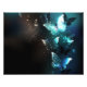 Mariposas brillantes nocturnas de menta sobre fondo abstracto negro.