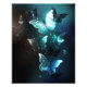 Mariposas brillantes de menta por la noche sobre fondo abstracto negro.