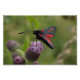 Una flor de cinco puntos de Burnet (Zygaena lonicerae), de borde estrecho, que se alimenta de una flor de Creeping Thistle (arvense de Cirsium) en el Parque Rural The Rising Sun, Newcastle upon Tyne.
