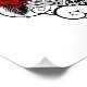 Contour, mechanical crescent moon with gears, decorated with red roses with black spiked stems and leaves on white background. Steampunk