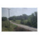 Mellow road rolls up through a pleasant rural countryside under sky lightened by pale clouds. Greens and blues in the scene present a cheerful aspect. There's a farmhouse set back from the road, in a pleasant location, almost hidden by leafy shade trees... you almost could go right past without noticing it.