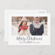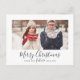 Esta tarjeta postal de vacaciones con foto minimalista de Feliz Navidad para guardar la fecha de la boda es el saludo perfecto simple de vacaciones para una pareja comprometida. El diseño presenta tipografía clásica en blanco y negro combinada con una fuente de escritura rústica pero elegante con estilo de letra a mano.