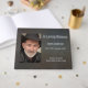 Un libro de visitas con la foto de tu personalizado enmarcado por un diseño de color oscuro. Un elegante libro de invitados de estilo minimalista para una celebración de la vida o el funeral o servicio de cremación.