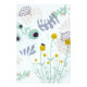 Introducing a vibrant and modern pattern that blends organic nature illustrations with contemporary abstract shapes. This design features cheerful yellow Billy Button flowers (Craspedia) interspersed with playful, semi-transparent teal, muted sage, and dusty rose forms, all set against a calming, light cool-grey background. Detailed illustrations of tiny, whimsical insects add a touch of organic charm and contrast.