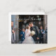 Tarjeta de agradecimiento de boda de presupuesto moderno con un diseño sencillo con "amor y agradecimiento" en un guión elegante con cambios de nombres sobre tu foto favorita. La parte posterior tiene tu mensaje personalizado en blanco y negro. Esta tarjeta de agradecimiento del boda es genial para un boda informal o formal.