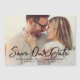 ¡Anuncien su cita de boda a la familia y amigos! Esta boda moderna, salvo el diseño del imán de invitación de fecha, presenta una foto horizontal de la pareja comprometida en la parte delantera con un overlay de caligrafía "Save our Date" (Salven nuestra fecha) cepillado blanco y un monograma de nombres de novias y novios y fecha boda que se puede personalizar. Tenga en cuenta que se puede modificar el color del texto blanco.