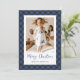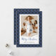 Minimalista tarjeta de Navidades fotográficos azules con un patrón de manto de búfalo azul. Personaliza fácilmente esta elegante tarjeta de Navidades de fotos azules con tu foto, texto y el nombre de la familia.