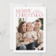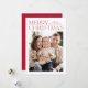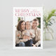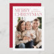 Tarjeta fotográfica navideña moderna con "Feliz Navidad" mostrada en la parte superior del diseño con letras rojas de moda con un fondo blanco. Personalice la tarjeta de Navidades simples con su nombre y foto de familia. La tarjeta se invierte para mostrar un fondo rojo con puntos blancos sutiles (nieve).