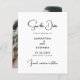 Las fotos modernas y económicas ahorran las tarjetas de fecha con la tipografía minimalista en blanco y negro que ofrecen una moda y una manera asequible de anunciar a su boda. Este diseño de doble cara presenta una foto completa que muestra su imagen favorita de compromiso, mientras que la parte delantera resalta un diseño blanco limpio con texto negro elegante, mezclando un tipo de letra elegante con letras sísmicas intemporales. Ideal para las parejas que buscan una opción económica pero sofisticada, esta plantilla combina sencillez y elegancia para una presentación pulida que se adapta perfectamente a temas modernos, clásicos o rústicos de boda. Diseñado para impresionar sin exceder su presupuesto, es perfecto para compartir la fecha de su boda con estilo y facilidad.